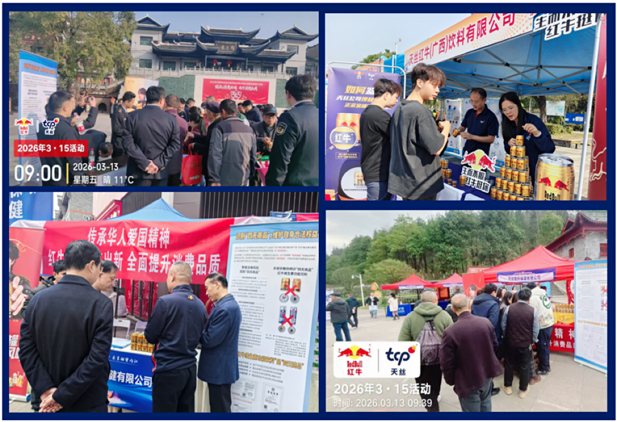 在严厉打击侵权产品的同时,天丝集团着力增强消费者品牌意识,推动正品识别成为消费者自我保护的重要屏障。“3·15”期间,天丝集团红牛团队跨越辽宁、新疆、河南、安徽、浙江、江西、湖南、四川、贵州等十余个省市,联合当地市场监管部门开展“红牛”正品鉴别及宣传展示活动,通过实物对比与现场讲解,帮助消费者和商家掌握正品识别技巧。这些活动不仅引导消费者远离假冒产品,也将绿色消费、科学理性消费理念融入基层科普,助力消费品质生态建设。
