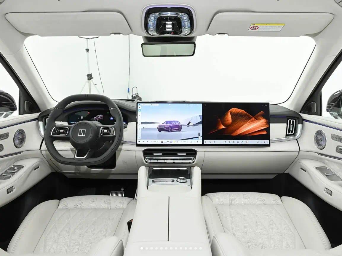 内饰方面其实在公布之前也出不多看过谍照了,极氪8X采用中控屏和副驾屏组成的双联屏设计,与理想汽车的双联屏类似。